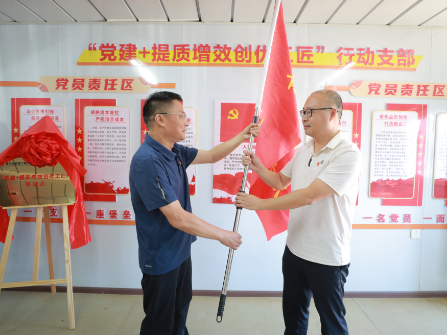 隨后,建工集團(tuán)機(jī)關(guān)黨支部開展“能工巧匠”黨建品牌活動(dòng),學(xué)習(xí)宣貫了清廉項(xiàng)目清風(fēng)工匠行動(dòng)、青年突擊攻堅(jiān)工匠行動(dòng)和提質(zhì)增效創(chuàng)優(yōu)工匠行動(dòng)實(shí)施方案。王鵬同志帶領(lǐng)全體黨員宣讀了廉潔從業(yè)誓詞,崔巍同志和呂成芳同志分別為項(xiàng)目廉潔監(jiān)督員頒發(fā)聘書,廉潔監(jiān)督員代表作了履職承諾。建工集團(tuán)機(jī)關(guān)支部舉行了“建工集團(tuán)青年先鋒突擊隊(duì)”授旗儀式,洪登峰同志將隊(duì)旗授予青年先鋒突擊隊(duì)隊(duì)長(zhǎng)。最后全體黨員按照黨員責(zé)任區(qū)分工檢查了項(xiàng)目安全、進(jìn)度、質(zhì)量、經(jīng)營(yíng)、物資管理、法律風(fēng)險(xiǎn)的情況,并與項(xiàng)目部深入交流,提出改進(jìn)措施和意見。