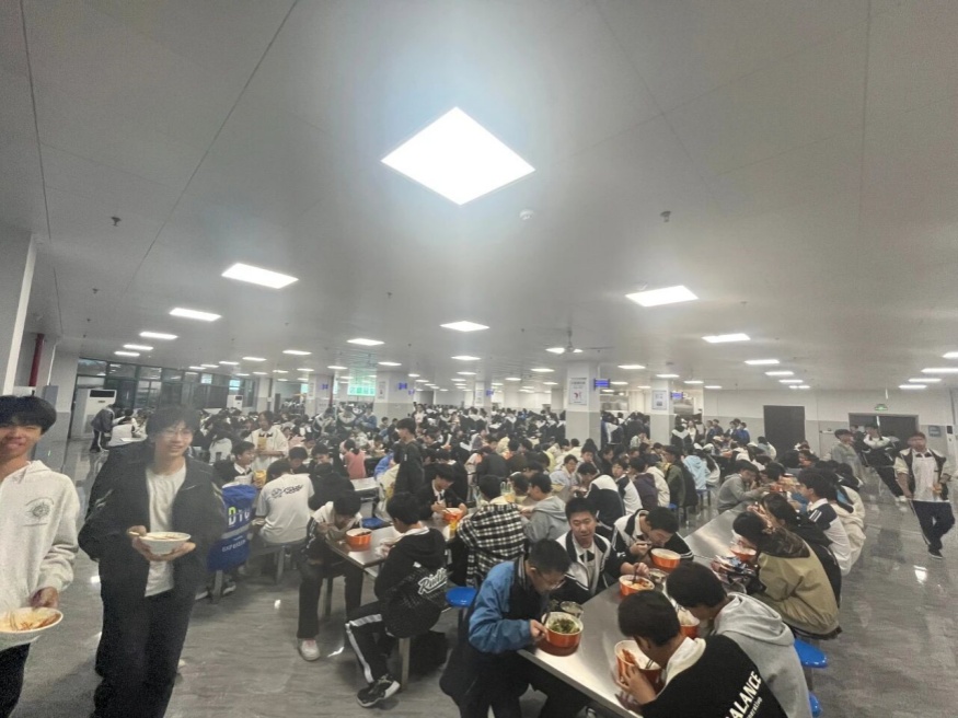 “食堂不僅環(huán)境好,菜品種類比以前豐富太多,還特別注重營(yíng)養(yǎng)搭配,我們家長(zhǎng)也更放心了。” 前來陪餐的家長(zhǎng)王女士說道。值得一提的是,食堂與風(fēng)雨操場(chǎng)建筑全程秉持綠色環(huán)保理念,屋頂鋪設(shè)的光伏板與室內(nèi)節(jié)能燈具相得益彰,生動(dòng)踐行了低碳校園建設(shè)目標(biāo)。