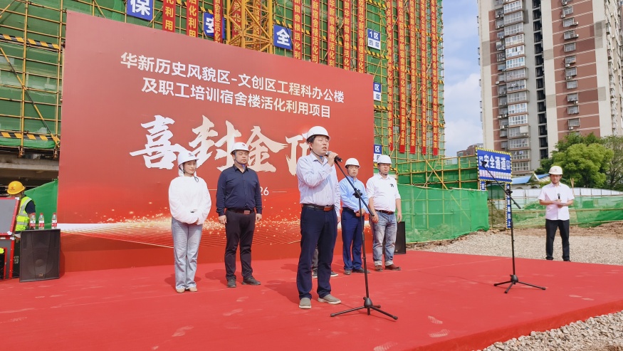 封頂大吉!華新歷史風貌區(qū)·文創(chuàng)區(qū)工程科 辦公樓及職工培訓宿舍樓活化利用項目 主體結(jié)構(gòu)封頂